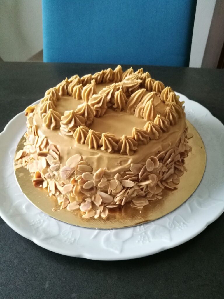 Ingrédients pour 8 personnes : Génoise : 4 œufs entiers 120 g de sucre en poudre 120 g de farine Crème au beurre au café : 10 jaunes d’œufs 250 g de sucre 300 g de beurre pommade extrait de…